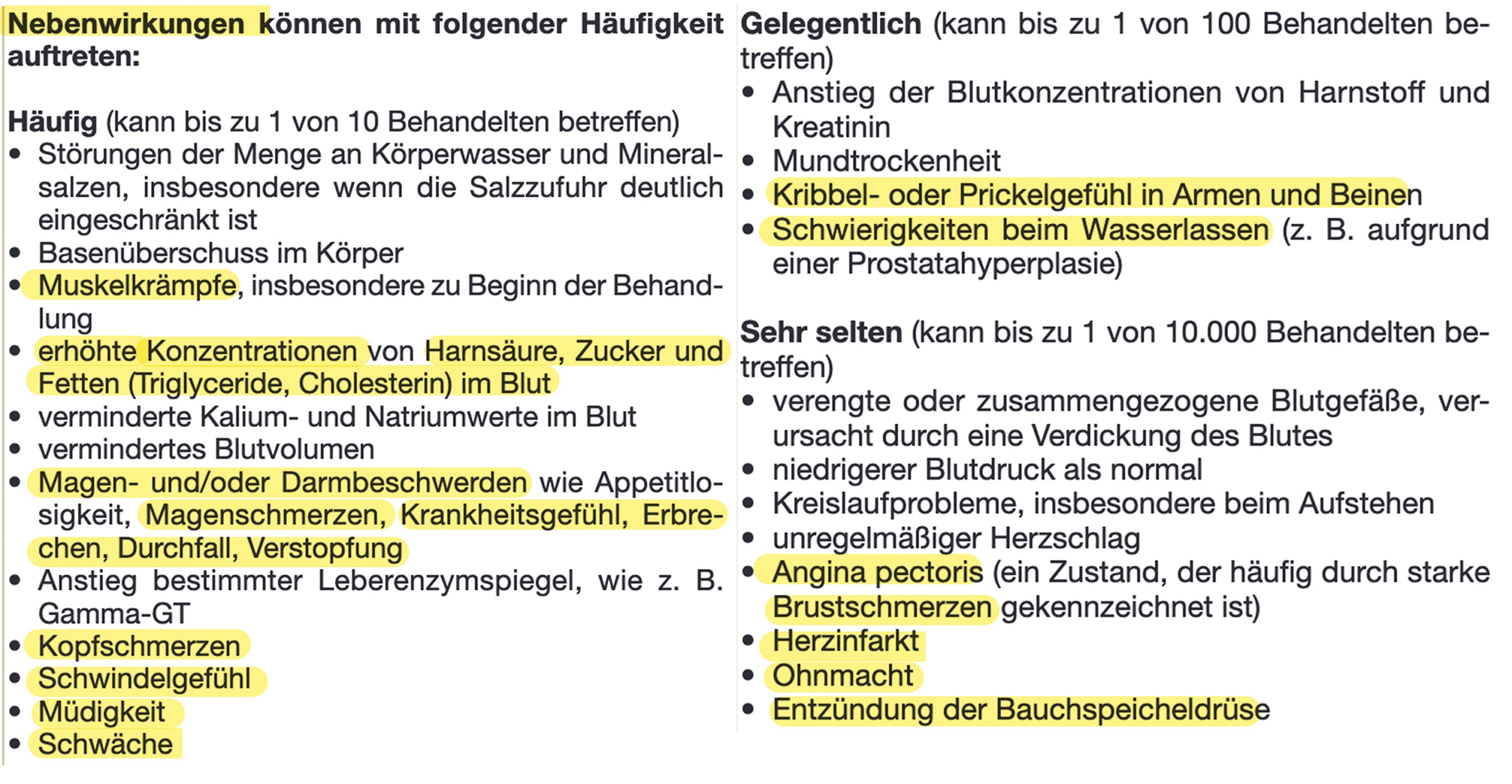Ich musste mich überwinden, den Beipackzettel der Diuretika zu lesen. Was ich dort über mögliche Nebenwirkungen und Langzeitrisiken fand, verunsicherte mich sehr!