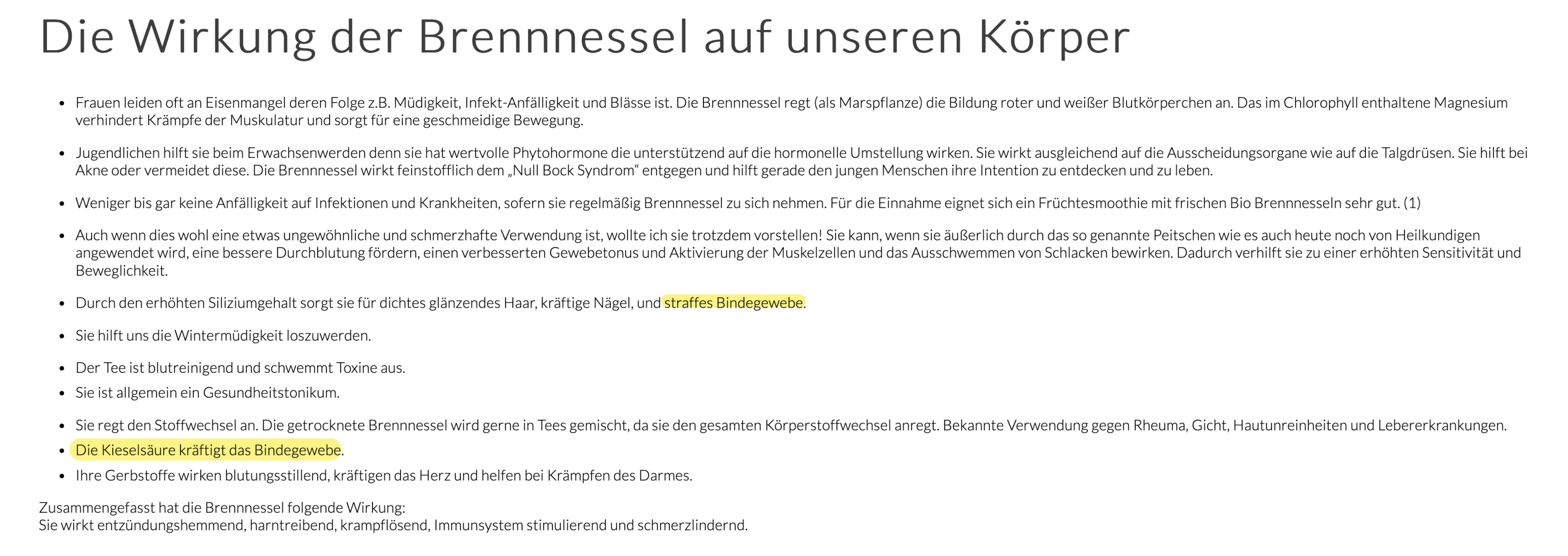 Dieses Präparat stach durch eine sehr hohe Dosierung von Brennnessel- und Ackerschachtelhalmextrakt hervor, wird in Deutschland produziert und die Reinheit der Inhaltsstoffe wird durch ein Labor zertifiziert.